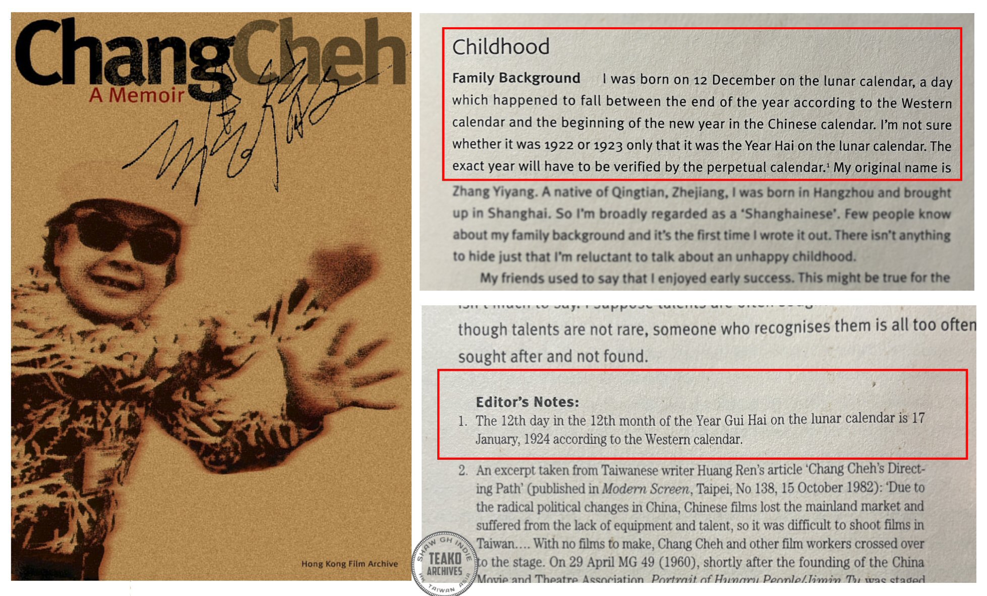 Click or tap image to enlarge Published by the Hong Kong Film Archive in 2003, this is a robust 450-page tome dedicated to the history of the Shaw Brothers, the studio, its star system, and productions. In the biography section of the book, on page 342, Chang Cheh's dates are listed as (1924 - 2002).